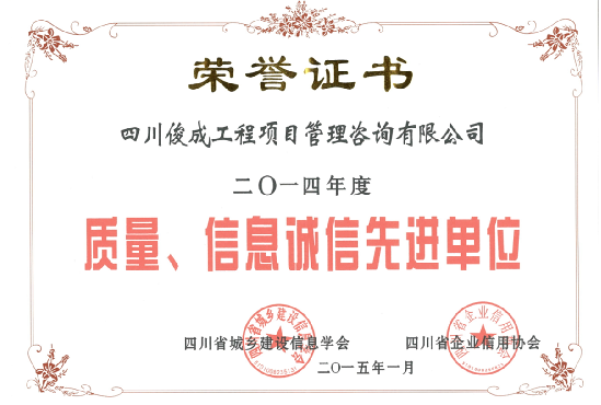 俊成建昱工程集團有限公司始建于二零零九年二月,中凱俊成建設咨詢有限公司為旗下子公司,公司分別位于四川省成都市成華區、德陽市凱州新城,公司注冊資本5000萬元人民幣。中凱俊成通過了ISO9001質量管理體系、ISO14001環境管理體系、ISO45001職業健康安全管理體系認證。   公司目前具有工程監理綜合資質,工程造價咨詢甲級資質,工程招標代理甲級資質,冶金行業(冶金礦山工程) 甲級設計.....[詳情]
